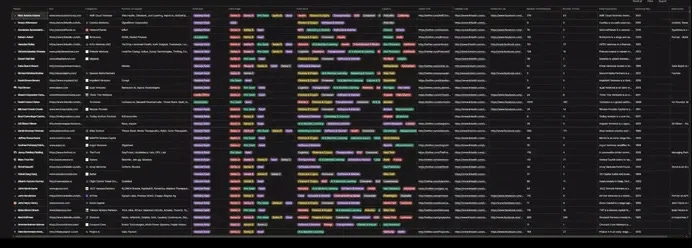 Dataset maps active US VC firms with stage focus, sector, geography, portfolio companies, and social links. Filtering and export features replace manual Crunchbase digging and scattered research workflows.