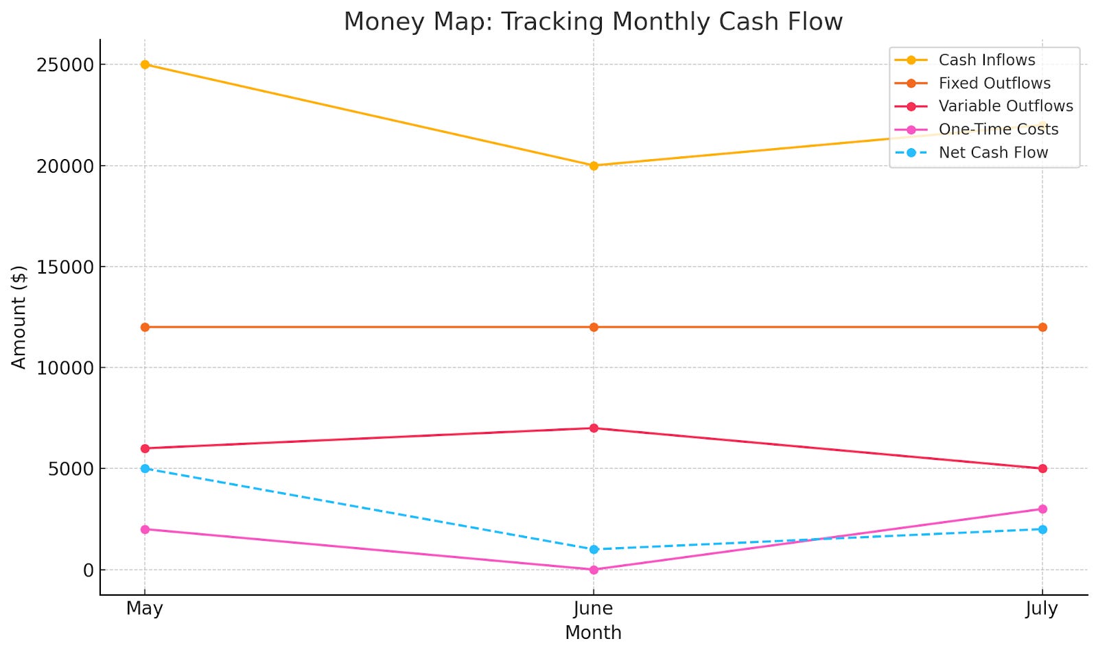 Spreadsheets are fine. But what most business owners really need is a way to see their cash, where it’s coming from, where it’s going, and when. That’s what a Money Map gives you. A simple, visual way to track your cash movements and make better decisions in real time.