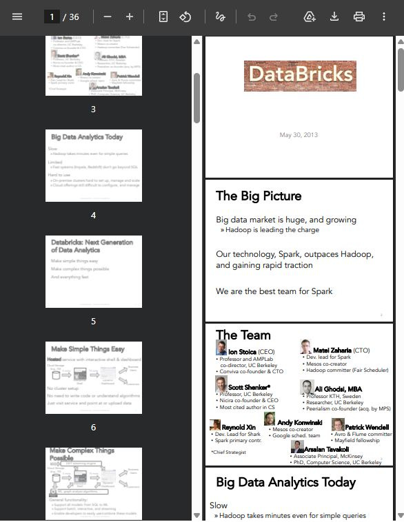 Databricks secured early investment despite a rough 36 page presentation and no product or revenue. Backers such as Andreessen Horowitz focused on the breakthrough technical insight rather than presentation polish.