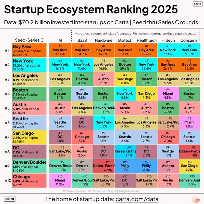 As AI lowers the barrier to building software, proximity to customers and industry expertise becomes more valuable. With strong fintech, consumer, and AI ecosystems, New York offers direct access to major enterprise buyers. [Michael Bloch]
