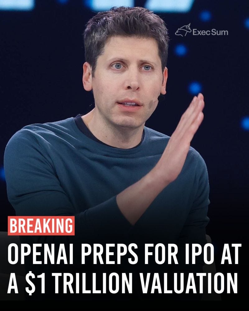 Andreessen Horowitz led the round, valuing the legal AI firm at $8B as it powers clients like A&O Shearman and KKR. Harvey now exceeds $100M ARR, cementing its dominance in enterprise-grade legal automation.OpenAI Reportedly Prepping $1 Trillion IPO 💥