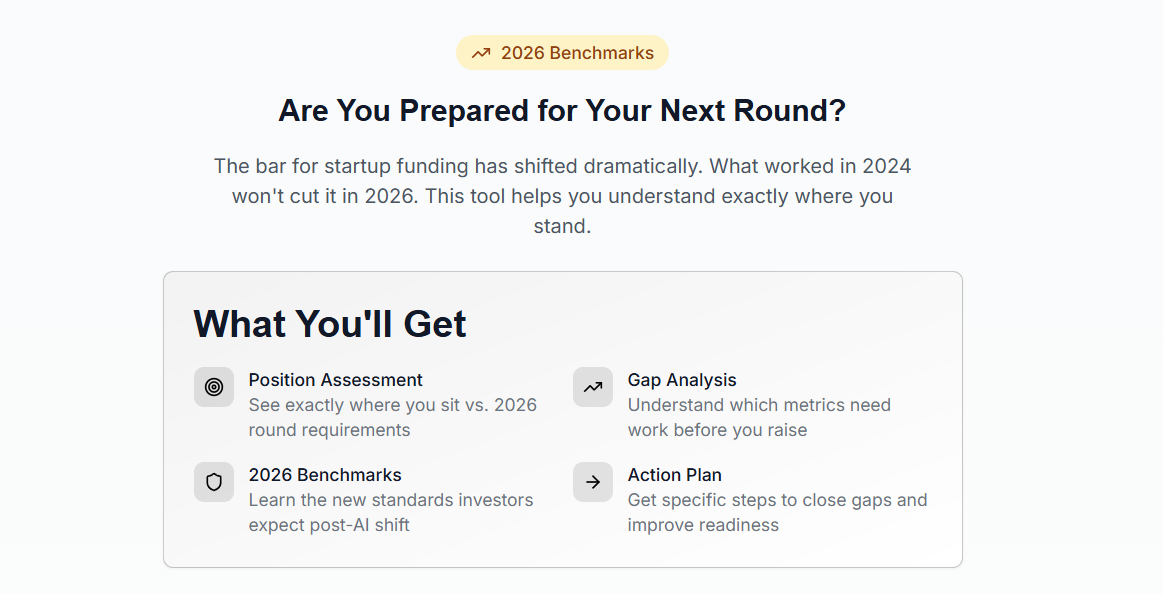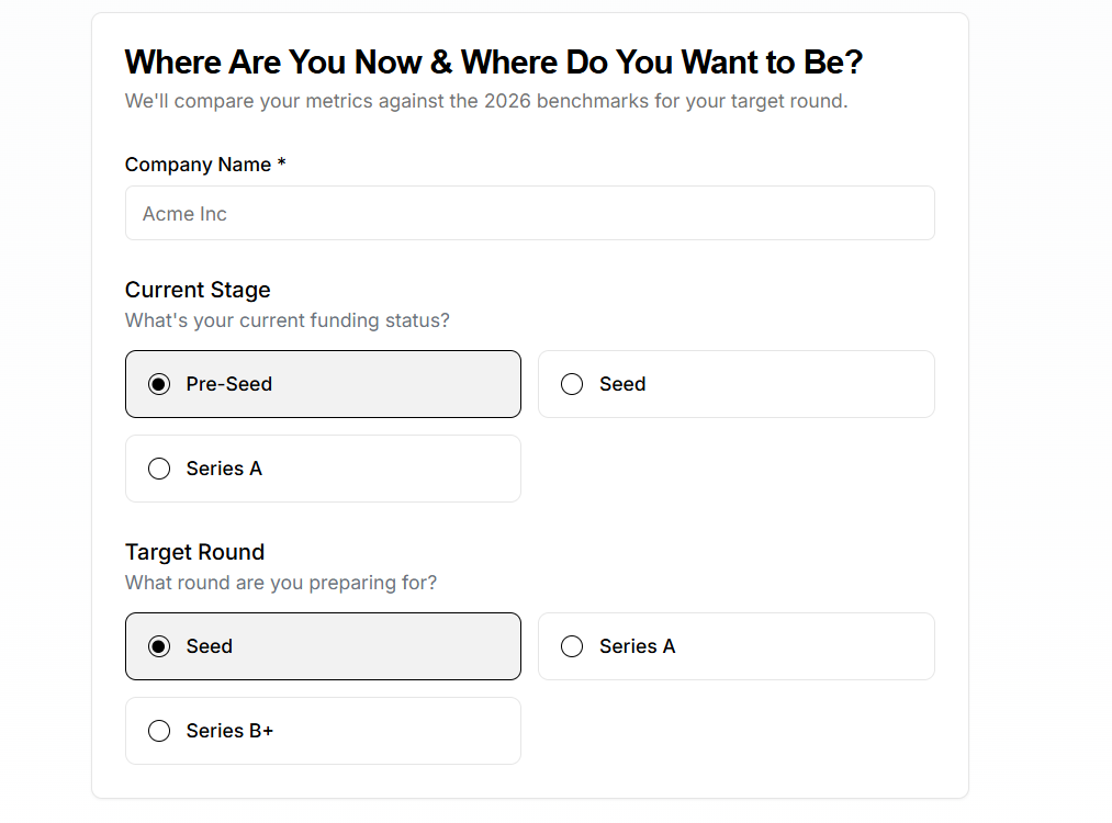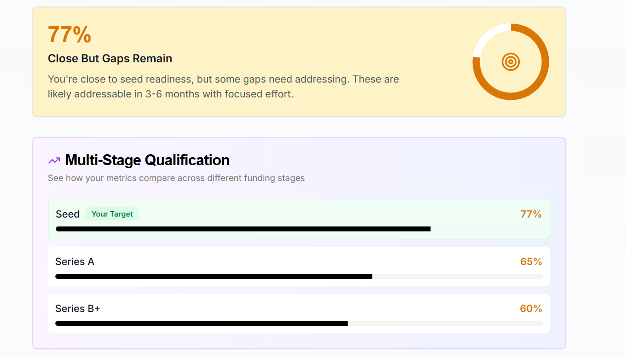 A simple way for you to understand whether you are truly fundable at the round you want, and what it would take to get there.