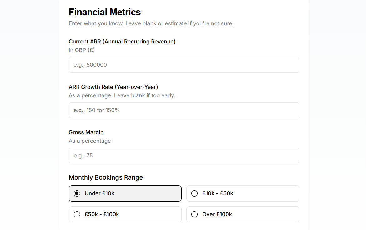 By clarifying your current and target stage upfront, the tool calibrates everything else. You instantly shift from asking: