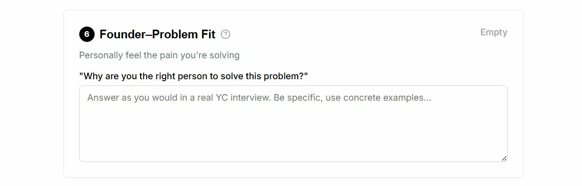 It was built to give you the honest, specific self-knowledge that most founders only get when they’re already in the interview — or already rejected.