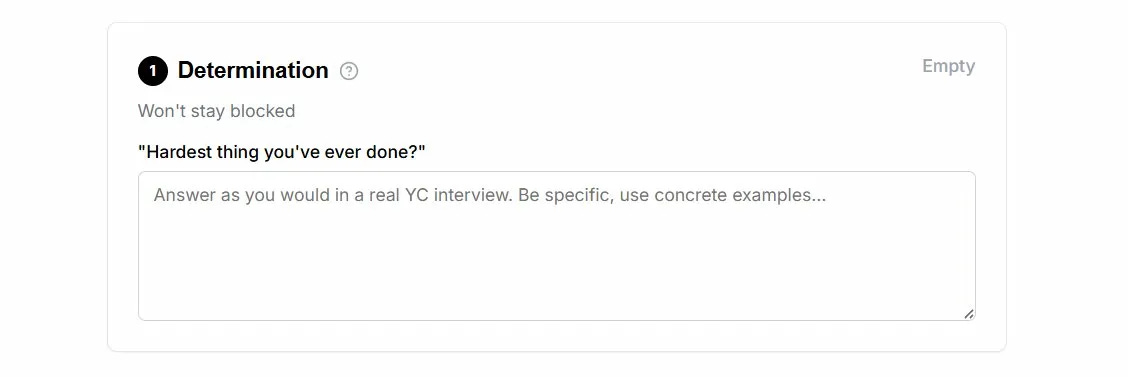 YC isn’t looking for the most objectively difficult challenge you’ve ever faced. They’re looking at the texture of your answer. Did you give up and regroup? Or did you find a way through — not around, not over, through?