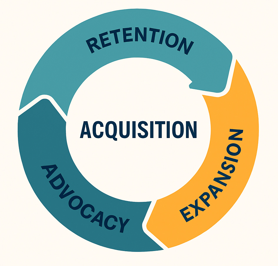 That’s it. That’s the Infinity Loop. It captures what funnels miss, that growth is self-reinforcing when customers not only buy, but adopt, expand, advocate, and refer.