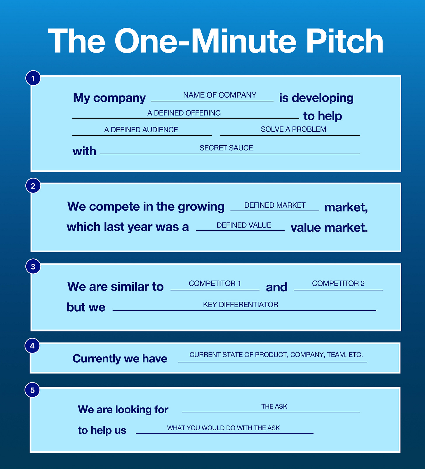 That’s why I love this visual so much: The One-Minute Pitch. It forces you to do the hard work up front. To get brutal with your messaging. To strip it all back until there’s nowhere left to hide. And that, for a founder, is gold dust.