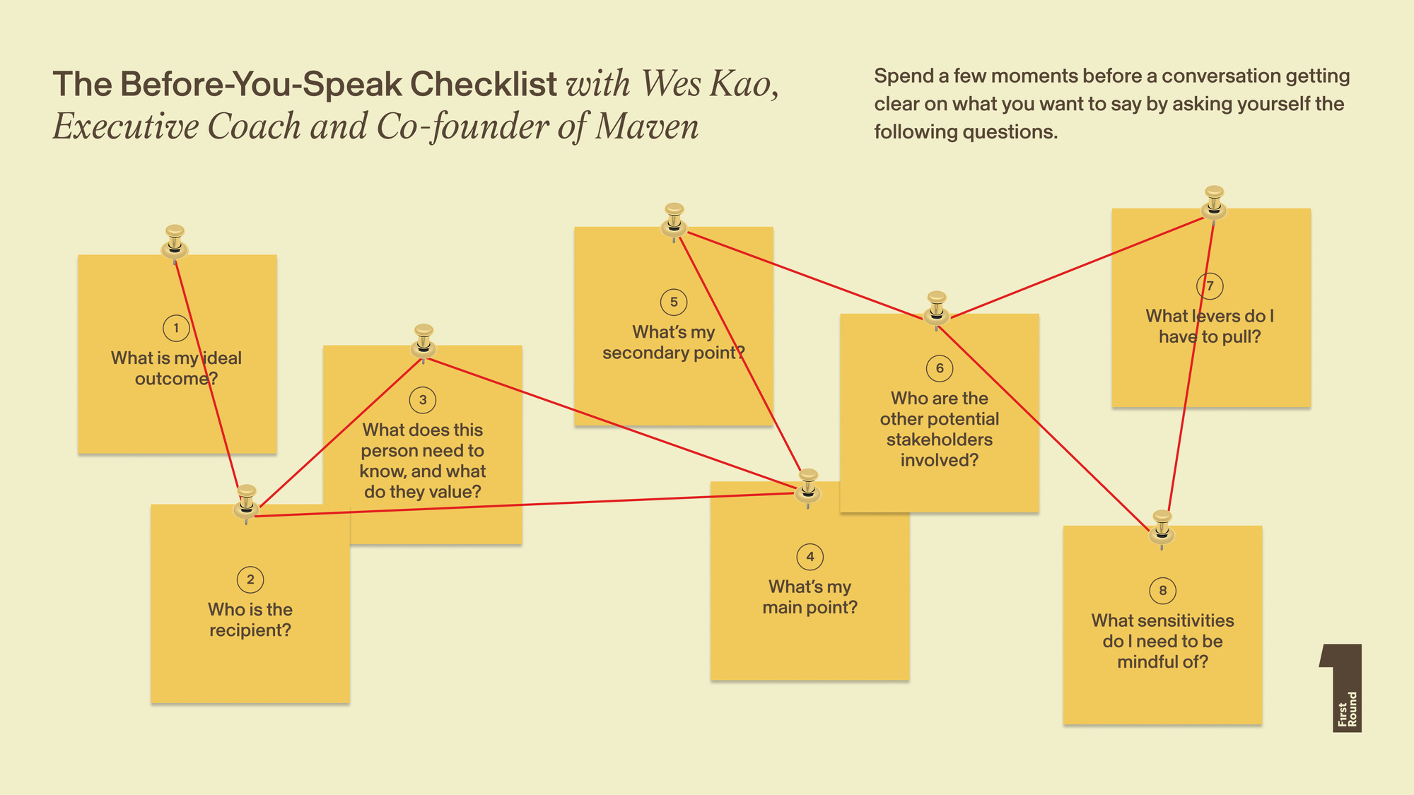 Practical guidance shows how to align communication style with message to build trust and influence. It covers self-audit, preparation habits, reading the room, decoding feedback, and leaning into spiky strengths. [Review - FirstRound]