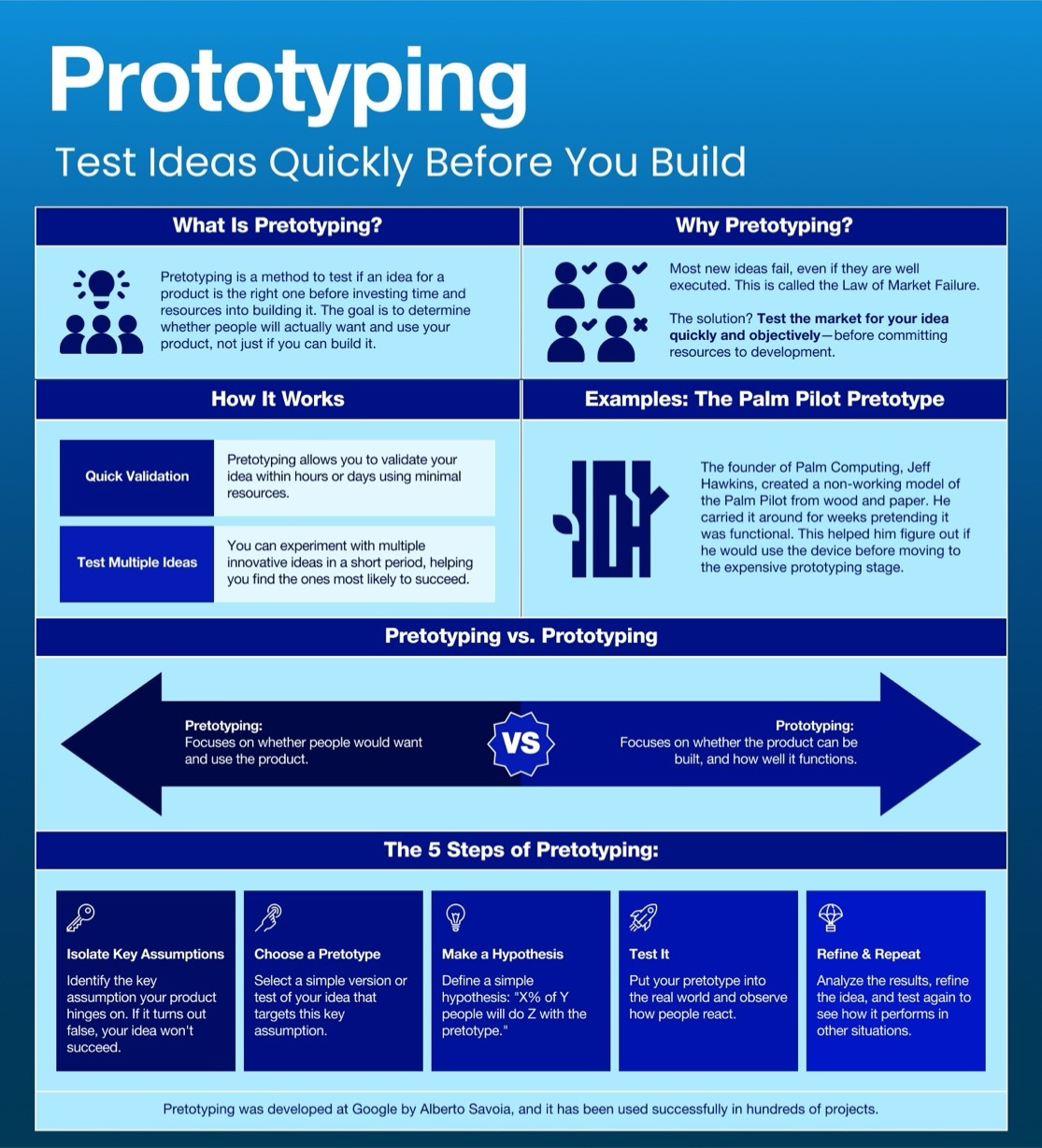 I have learnt about pre-validating ideas and putting together quick landing pages to test them. This is a great guide breaking down the concept—I really like the ring to the word "Pretotyping." Indeed, this is even more relevant in the build-an-app-overnight AI age.