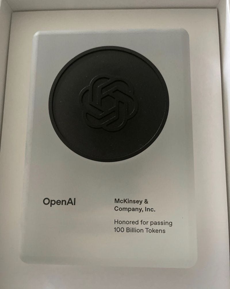 McKinsey hitting 100 billion tokens signals AI’s full arrival in strategy consulting. The era of GPT-5 Wrapper Consulting turns intelligence and data into boardroom-ready decision-making. [Tarry Singh]AI Market Madness: The Three Stooges of Silicon Valley 💸