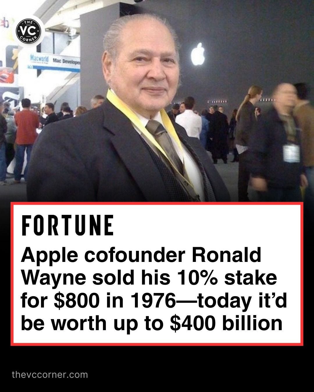 In 1976, Ronald Wayne sold his 10% stake in Apple for $800, just 12 days after founding. He avoided risk and stayed safe, while Apple grew into a $4 trillion company decades later.