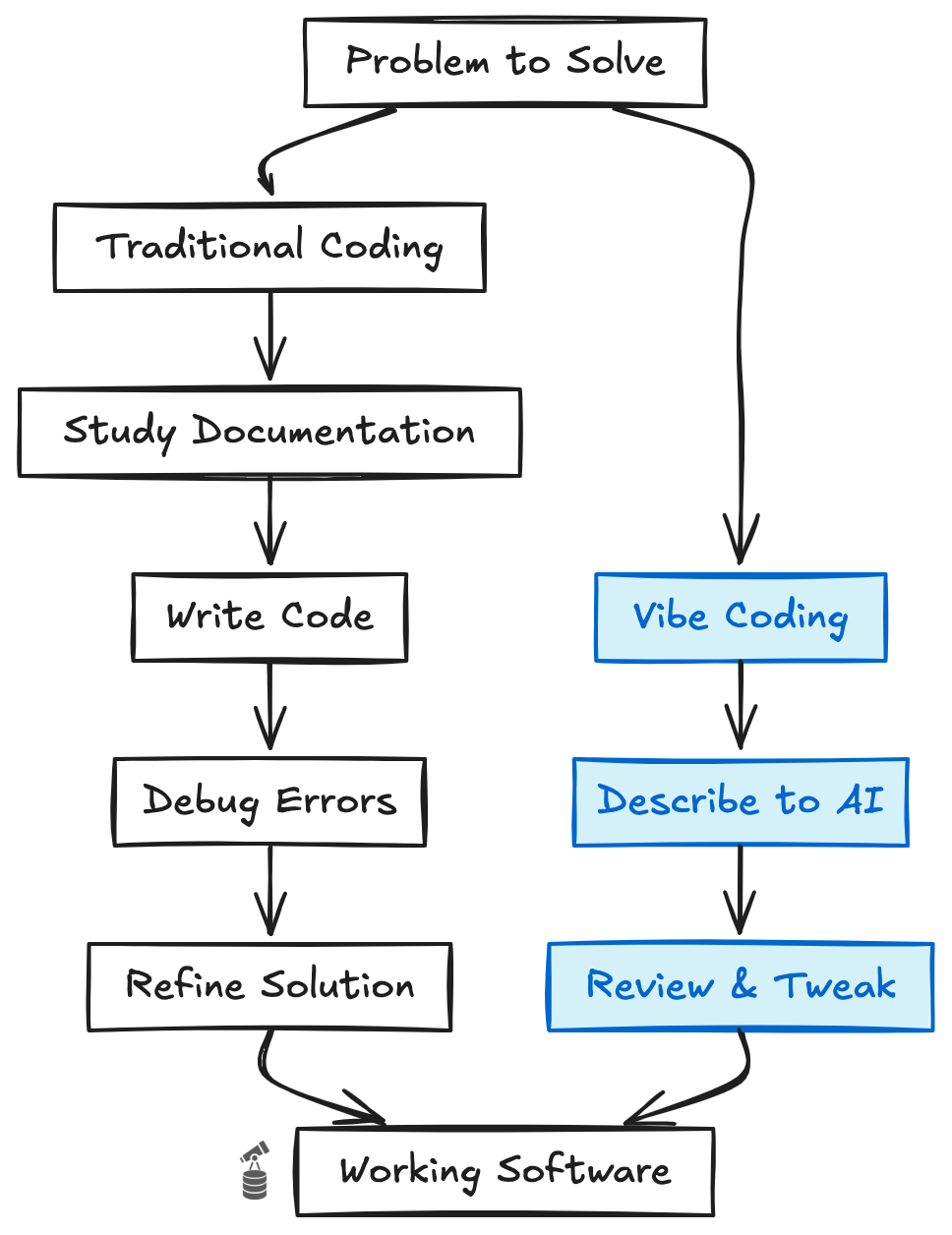 Vibecoding empowers everyday creators, people without a background in software development, to build real, working applications and tools.