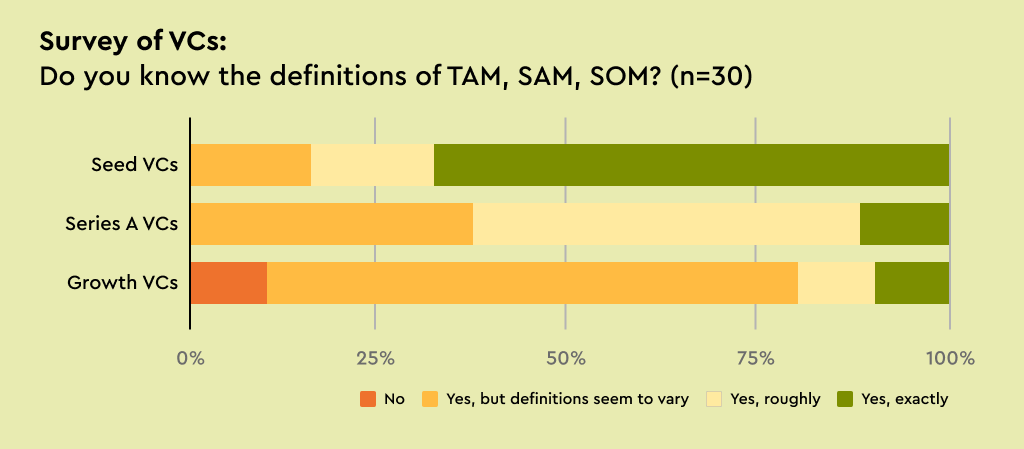 The textbook definitions are vague. Ask ten VCs what the difference between TAM and SAM is and you’ll get ten slightly different answers. Pear VC surveyed 30 investors on this exact question — the results were illuminating.