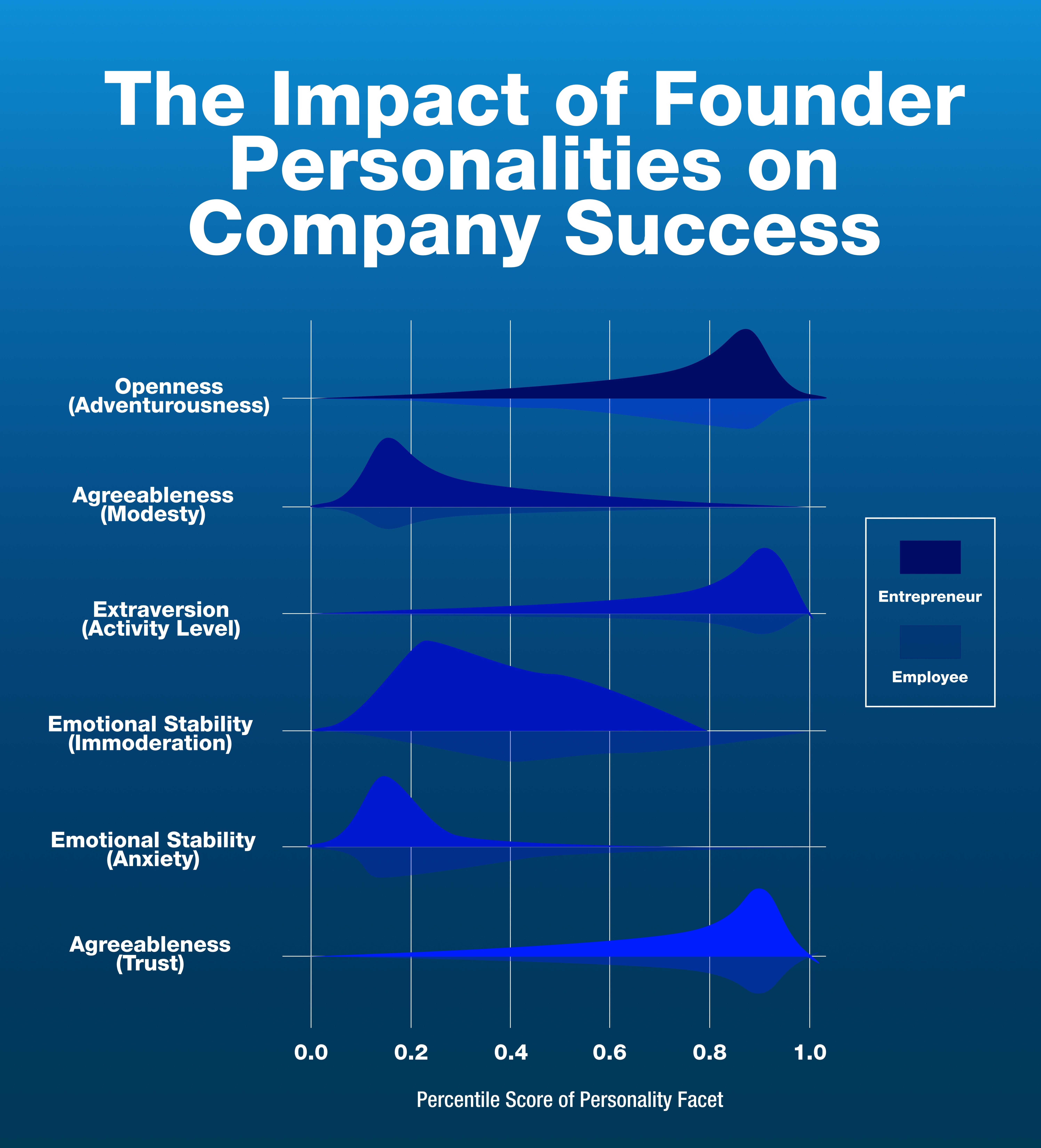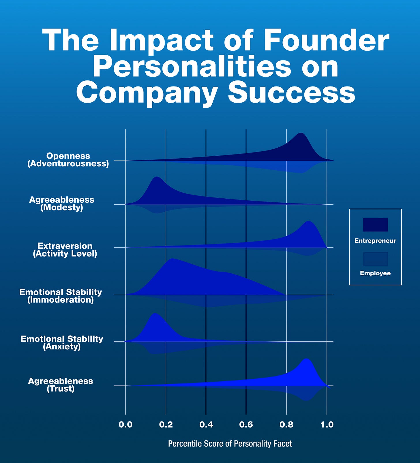 Founders typically score lower on anxiety, a key component of emotional stability.