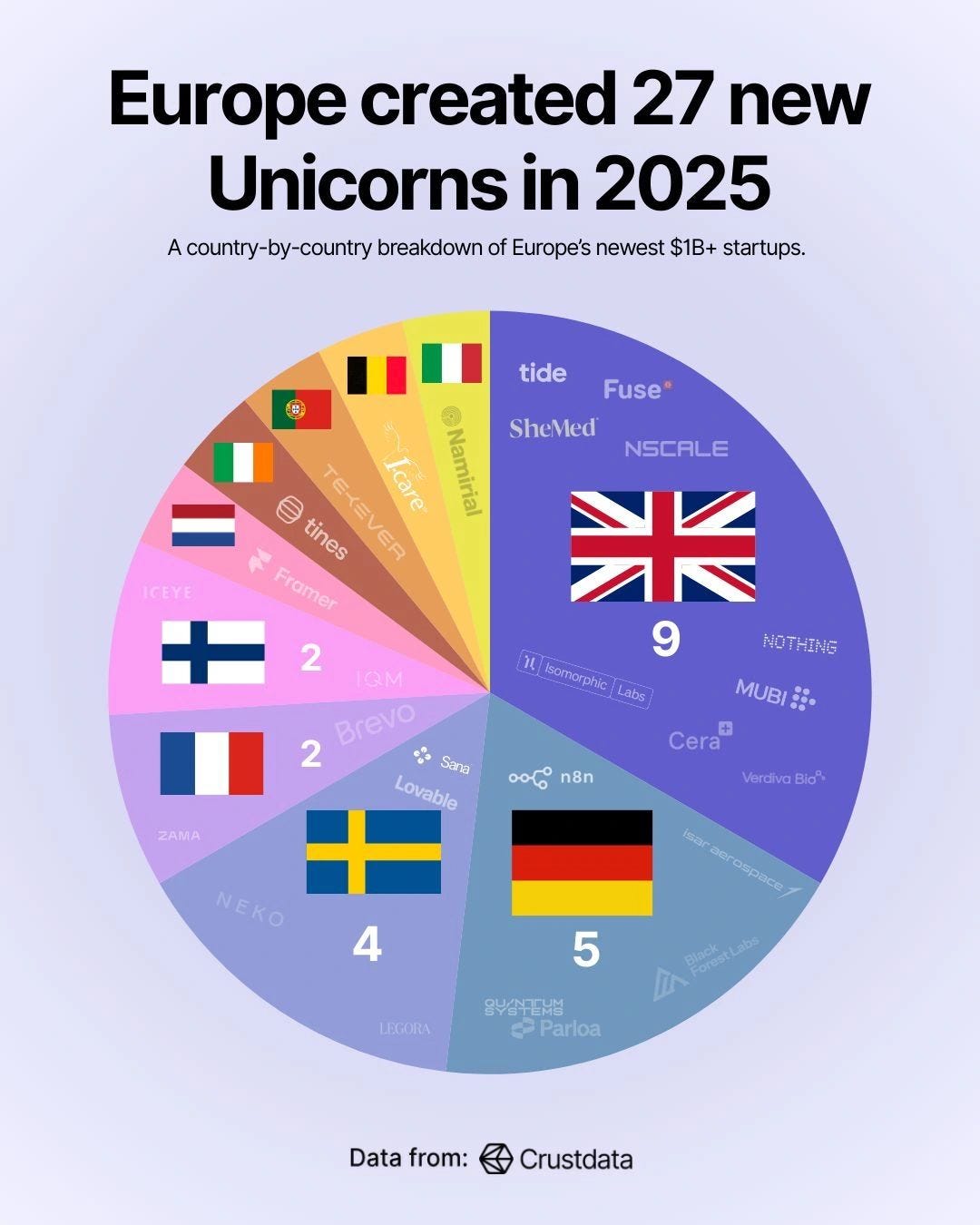 Many startup roles never appear on LinkedIn. This list covers VC portfolio boards, newsletters, fellowships, and networks where top opportunities are posted. [Jordan Mazer]Europe’s Unicorn Boom: 27 New in 2025 🦄