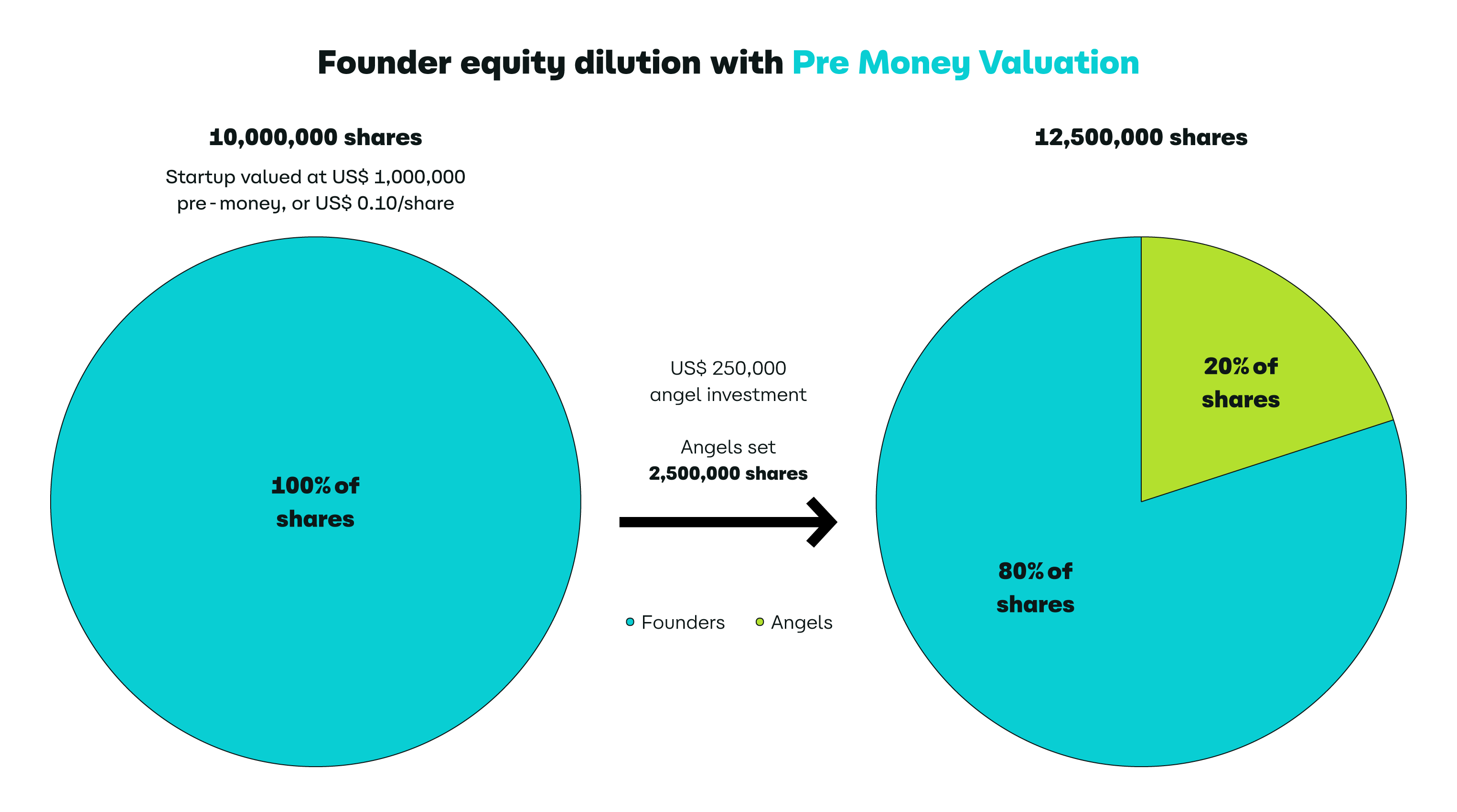 New shares are issued before the investor enters. Founders absorb that dilution first. The investor then takes 20% of the larger total.