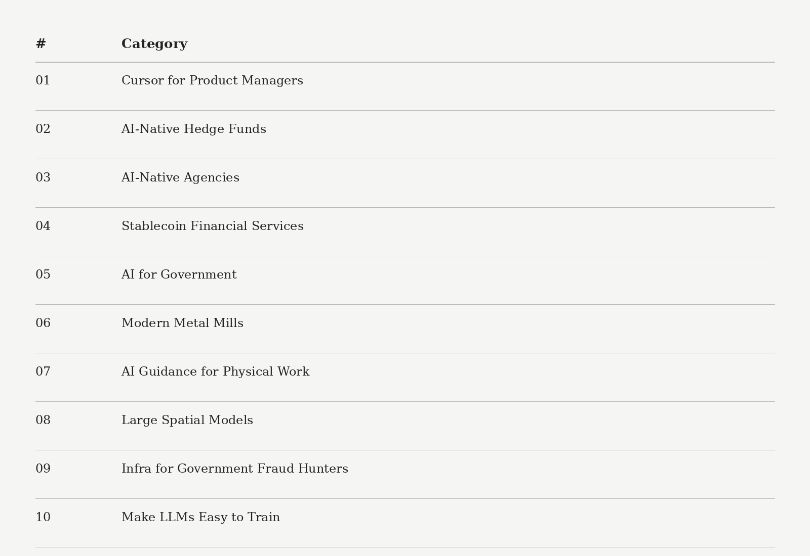 Here are the 10 categories on YCâs 2026 wishlist: