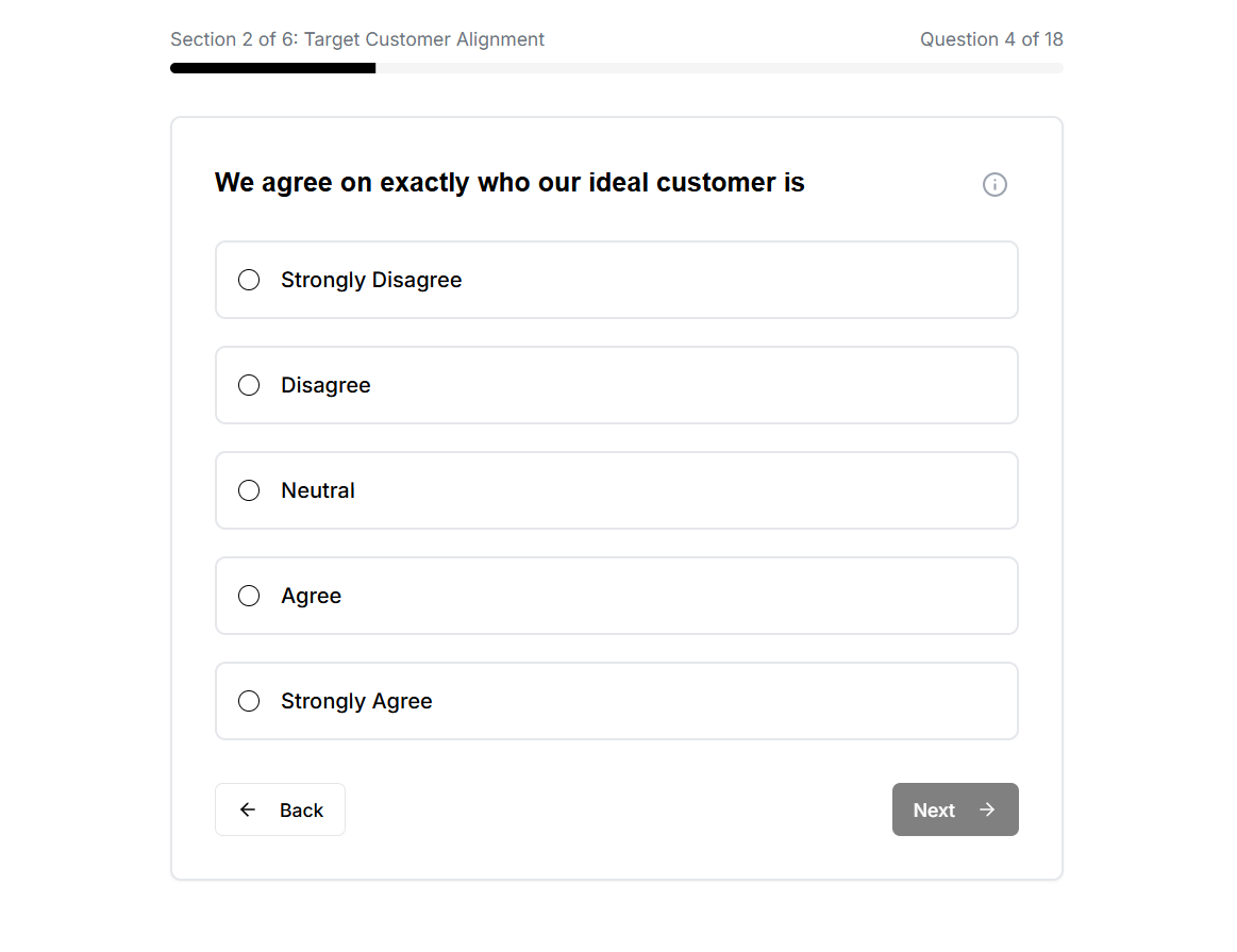 This dimension measures whether your leadership team shares the same conviction about the problem you are solving.
