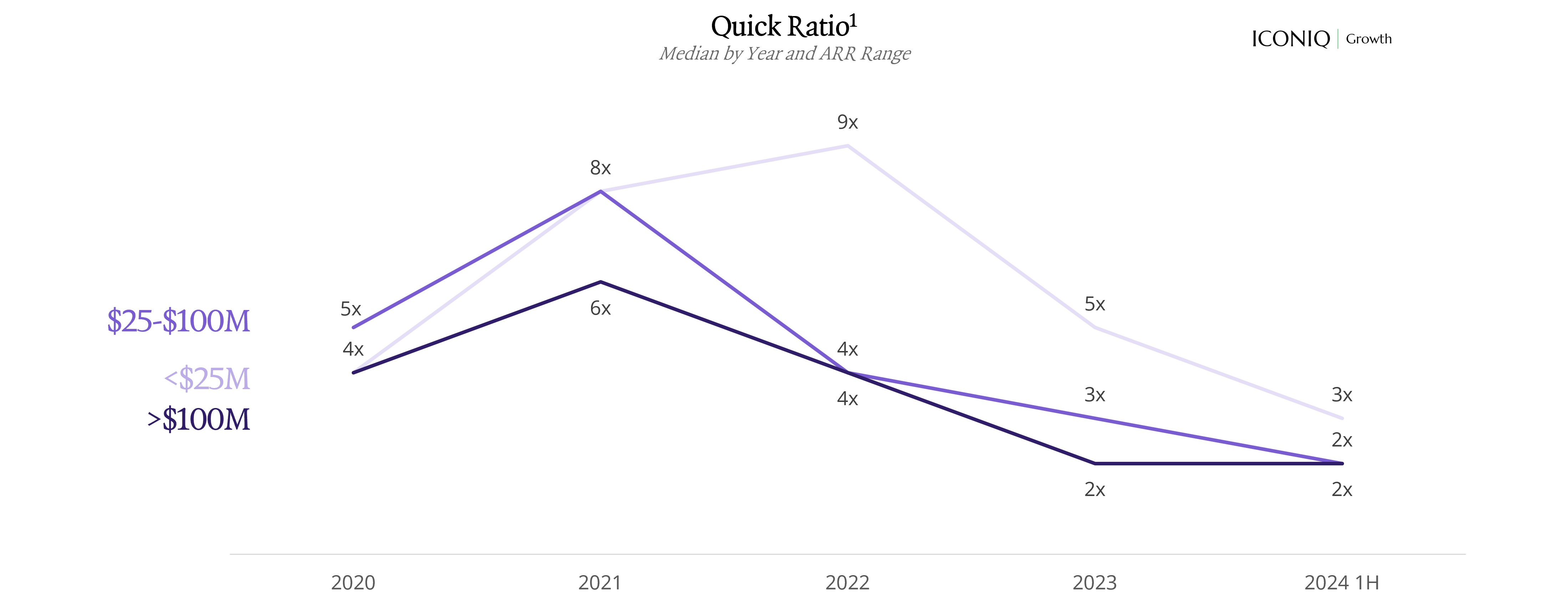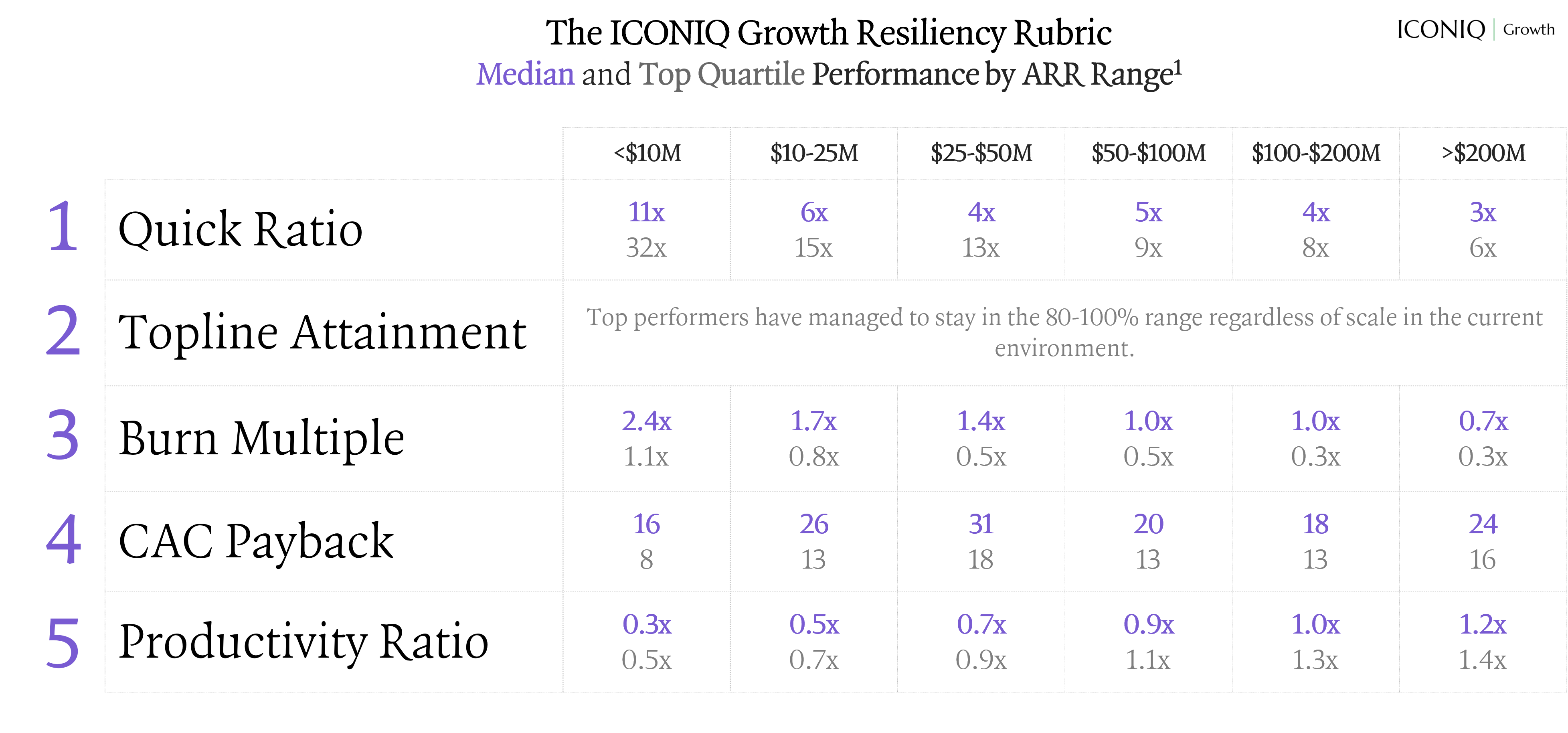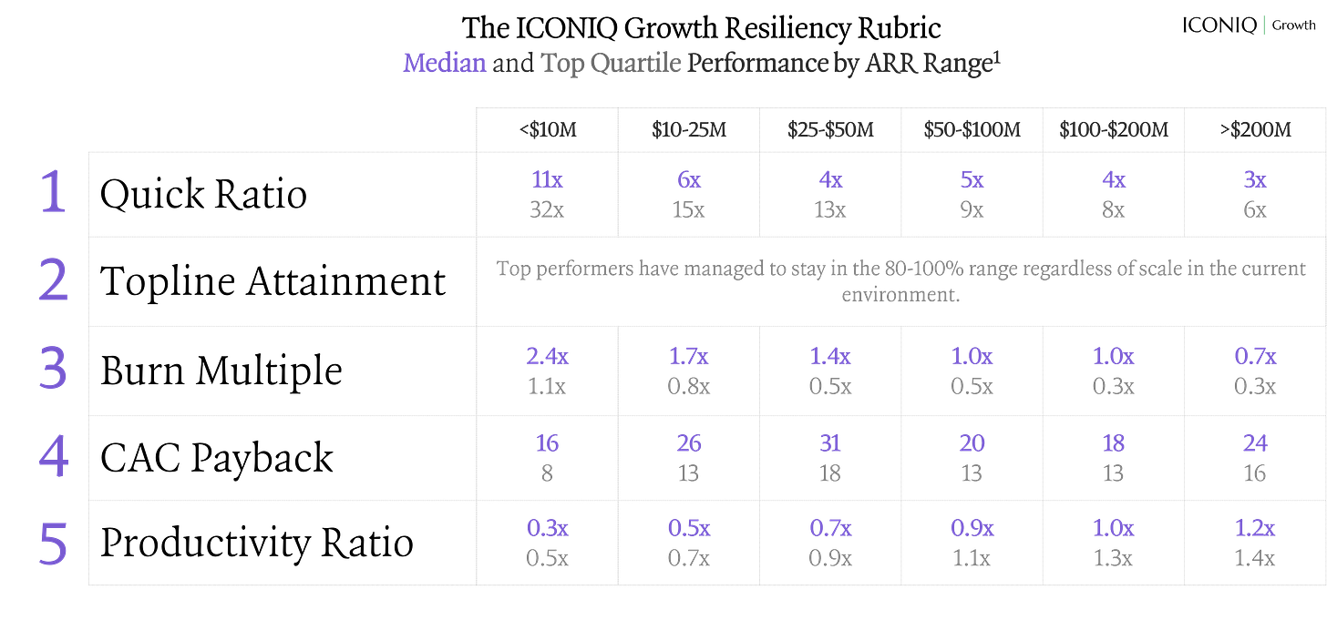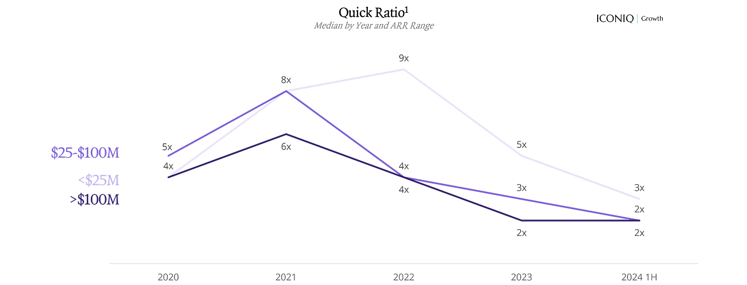 ICONIQ Growth, which has tracked financial and operating data from over 100 enterprise SaaS companies for more than a decade, notes that the Quick Ratio is a vital pulse-check on a company’s growth - but cautions that it should be paired with metrics like CAC payback and Burn Multiple for a truly holistic view of efficiency.